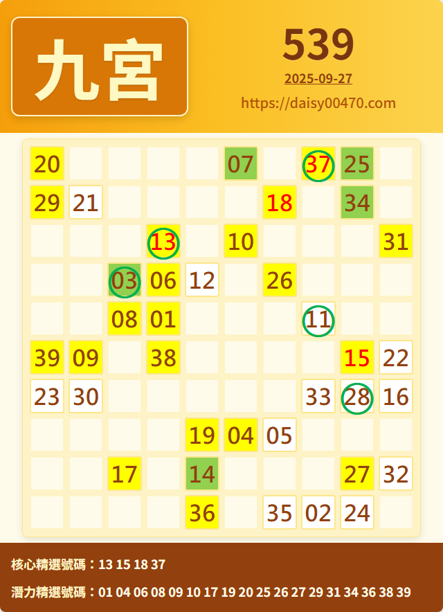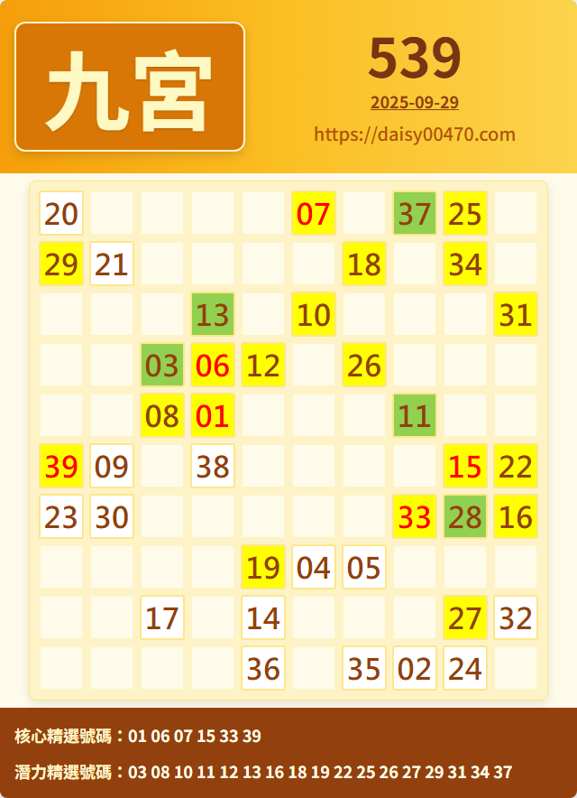 9/29 今彩539 九宮 精選 高機牌 合牌參考
