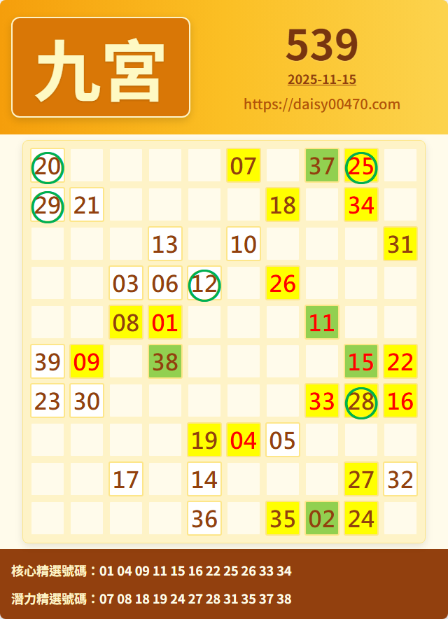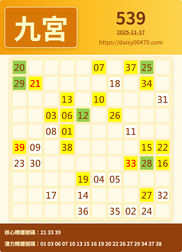 11/17 今彩539 九宮 精選 高機牌 合牌參考