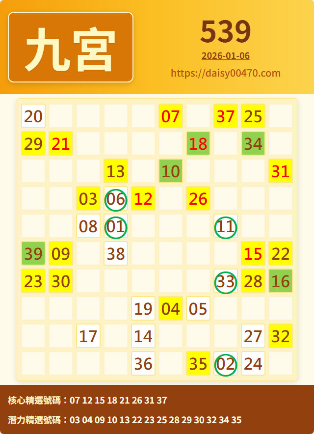 1/7 今彩539 九宮 精選 高機牌 合牌參考