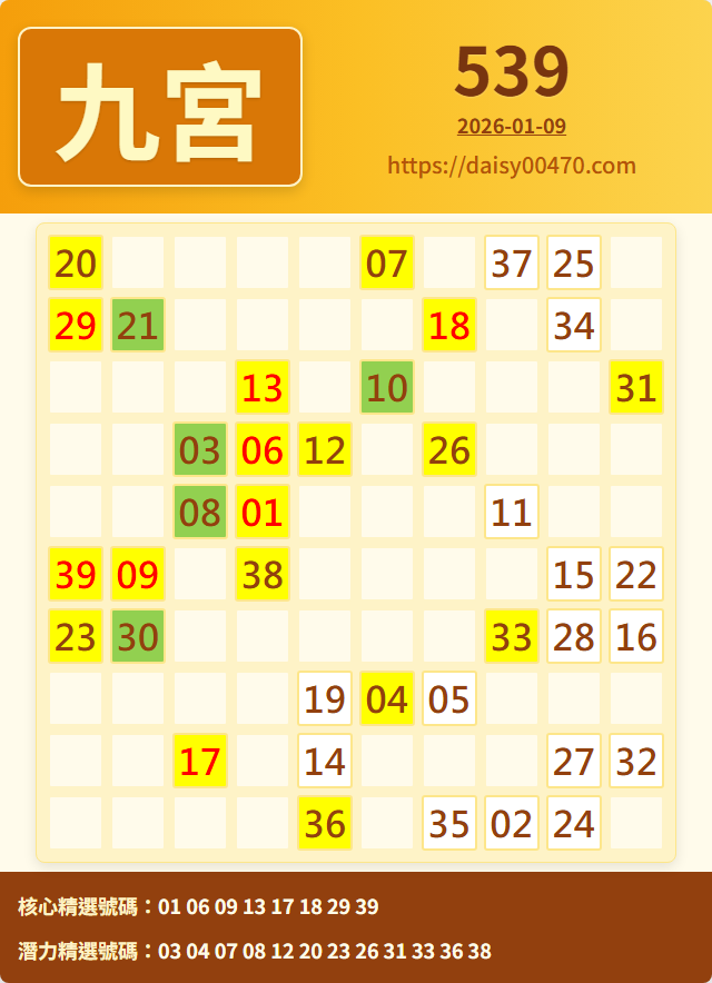 1/9 今彩539 九宮 精選 高機牌 合牌參考