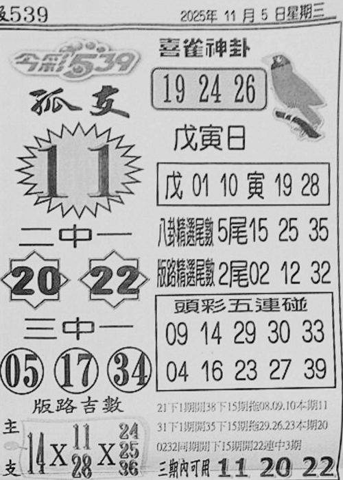 11/5 今彩539 台北鐵報
