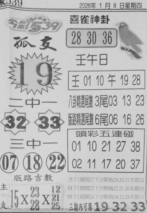1/8 今彩539 台北鐵報