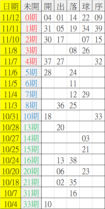遠星號碼:02 03 06 10 13 16 20 21 23 35 38 共計11支。