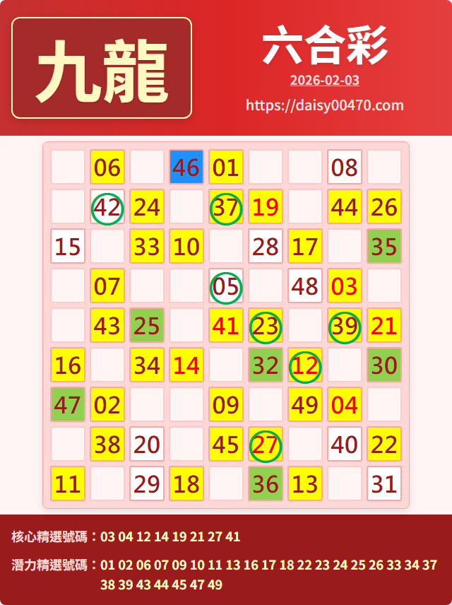 2/5 六合彩 九龍 精選 高低機牌 合牌參考