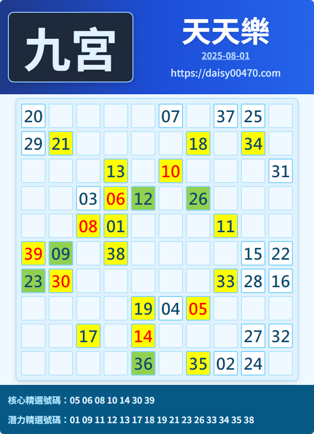 8/1 天天樂 九宮 精選 高機牌 合牌參考