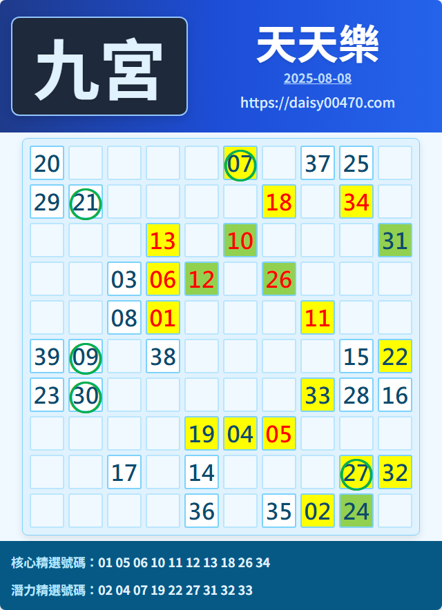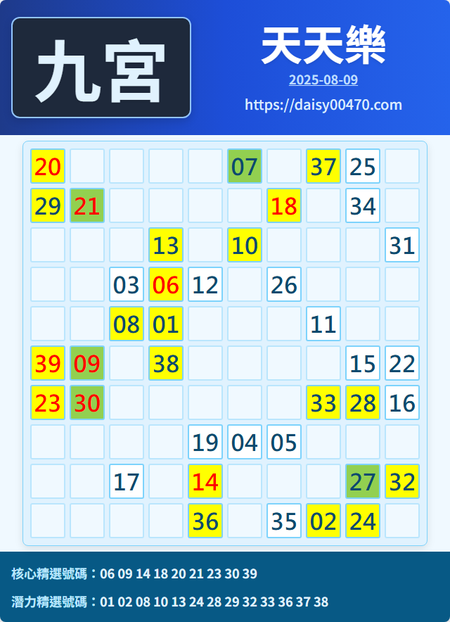 8/9 天天樂 九宮 精選 高機牌 合牌參考