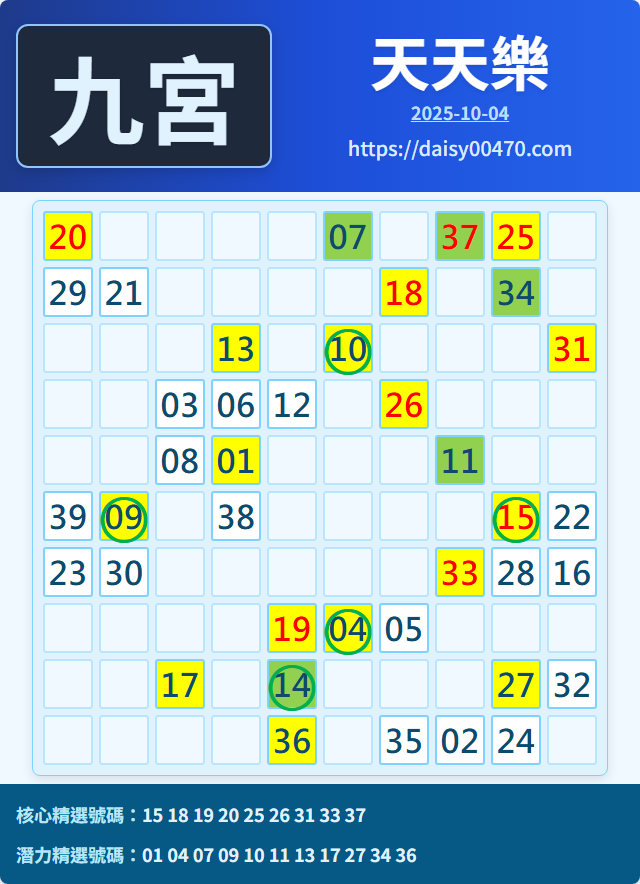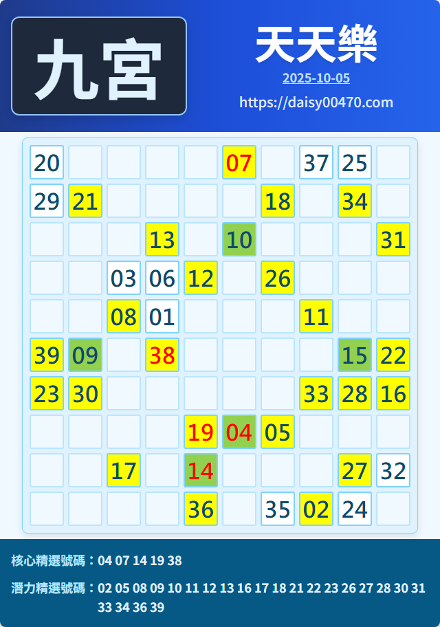 10/5 天天樂 九宮 精選 高低機牌 合牌參考