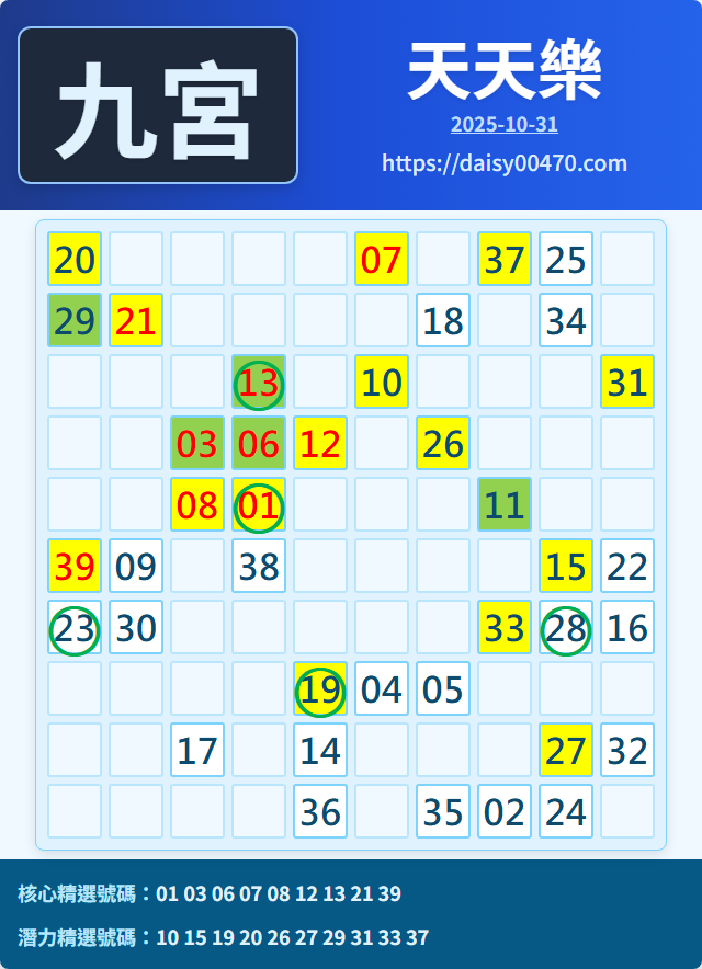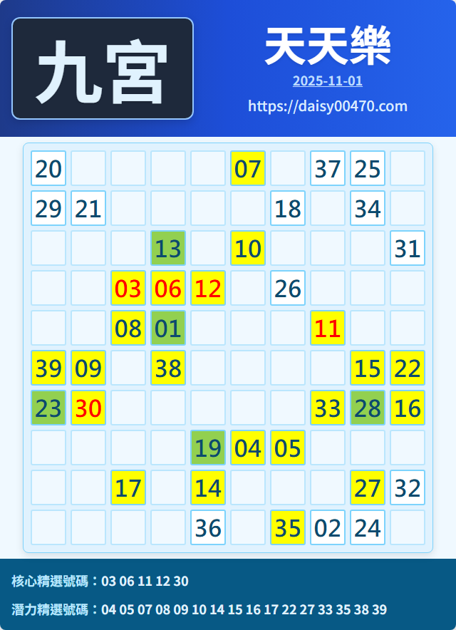 11/1 天天樂 九宮 精選 高機牌 合牌參考