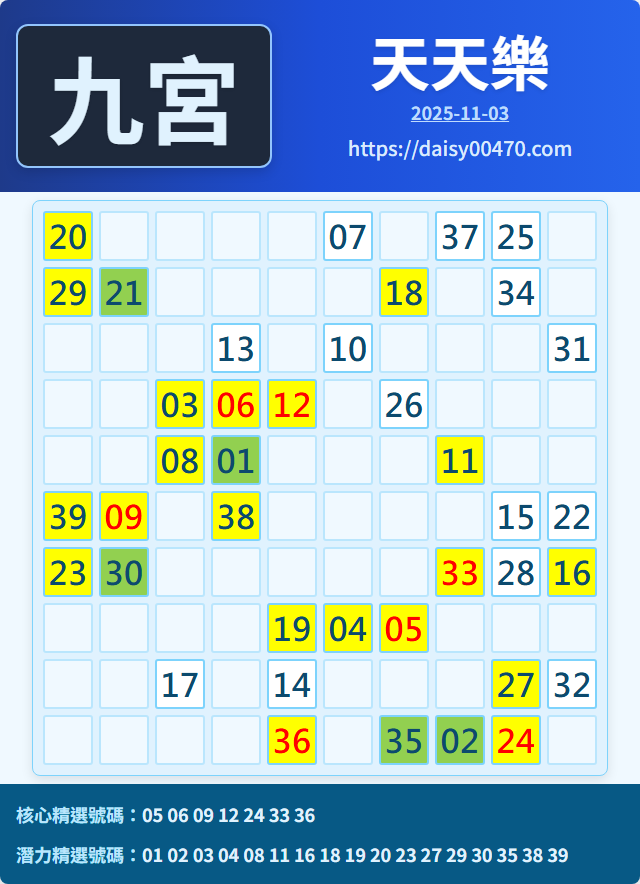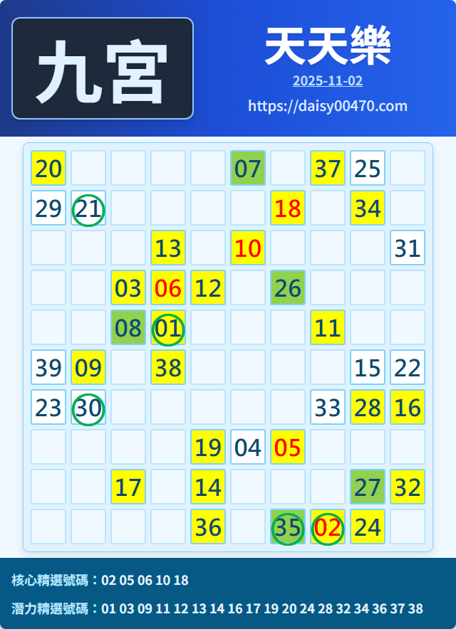 11/2 天天樂 九宮 精選 高機牌 合牌參考