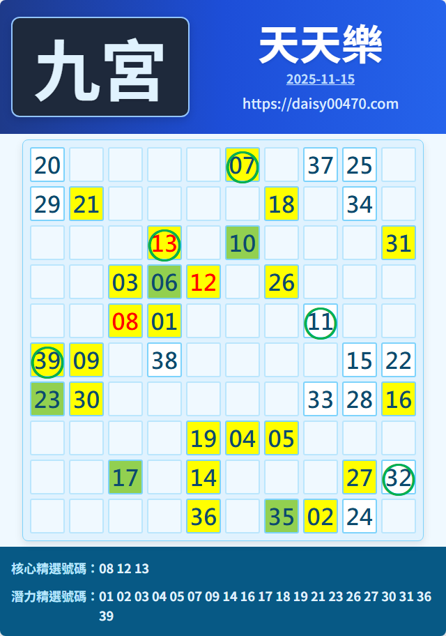 11/15 天天樂 九宮 精選 高機牌 合牌參考