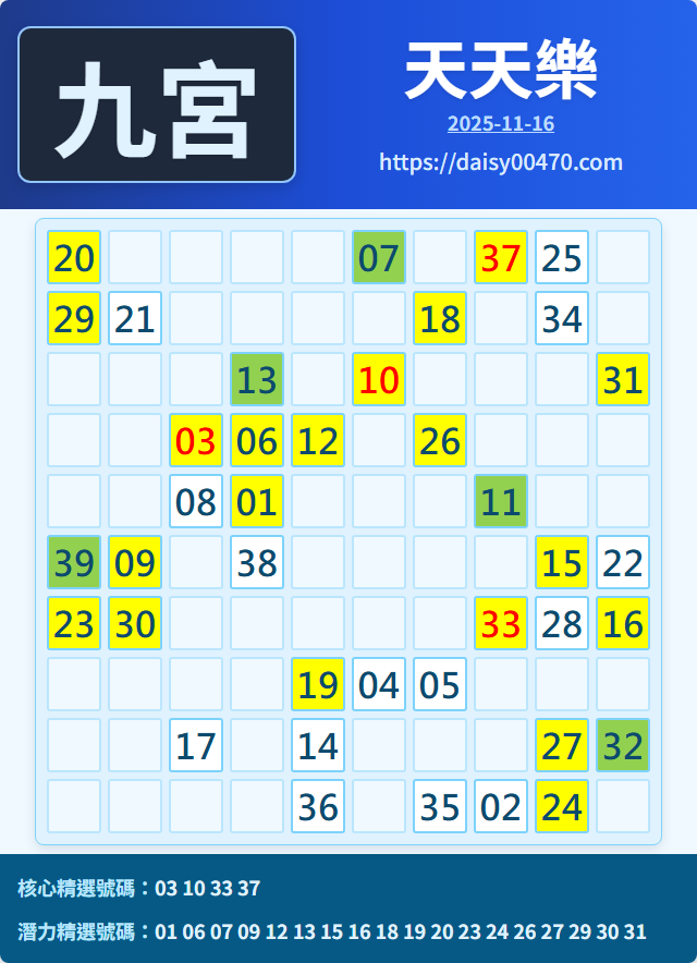 11/16 天天樂 九宮 精選 高低機牌 合牌參考