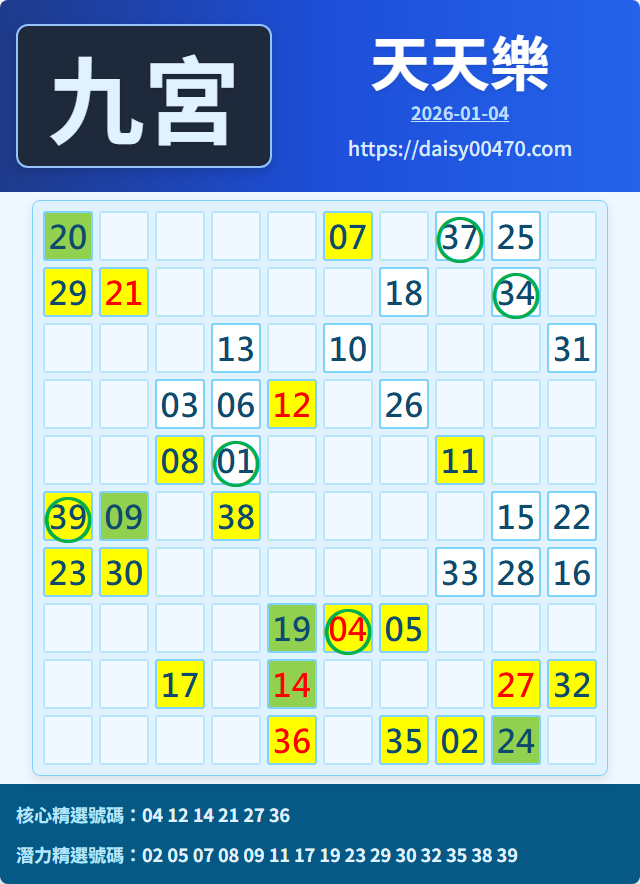 使用說明:使用說明:九宮圖為參考,以自己抓到的牌為準,分為入宮期和出宮期,開四支出宮一般三期內會開四到五支入宮,開四支或五支入宮則要小心三期內會開四支出宮。