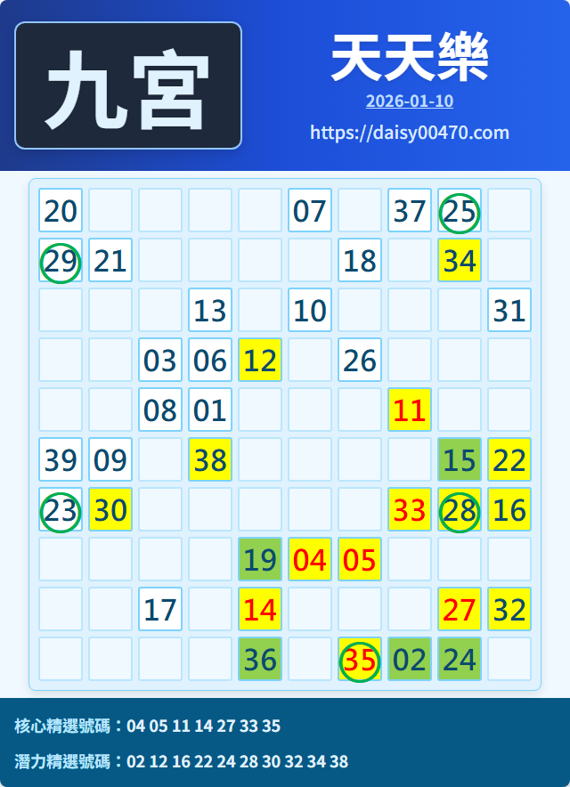 1/11 天天樂 九宮 精選 高低機牌 合牌參考