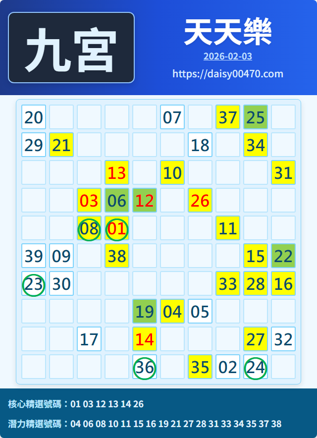 *最高機號碼:紅字。*高機號碼:黃色。*開出號碼:綠色。
