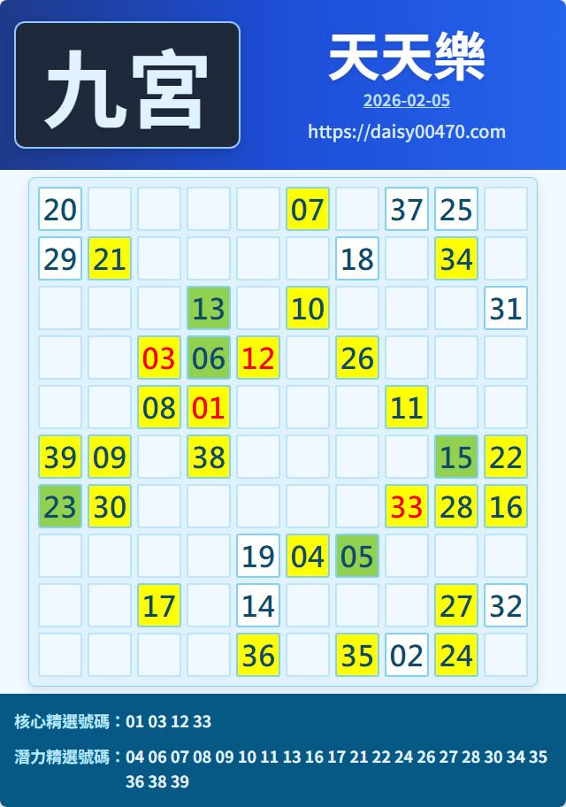 2/5 天天樂 九宮 精選 高機牌 合牌參考