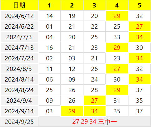 27 29 34 三中一