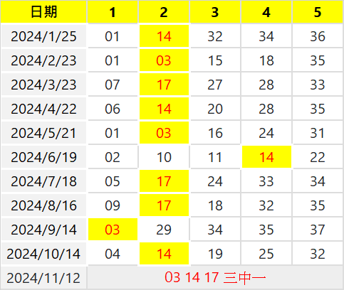 每隔25期開出