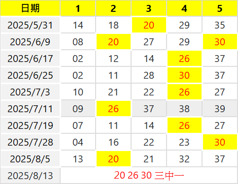 20 26 30 三中一