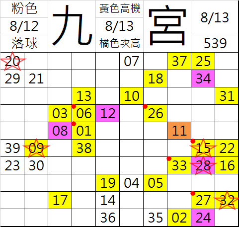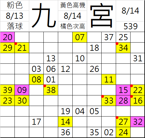 8/14 今彩539 九宮 精選 高機牌 合牌參考