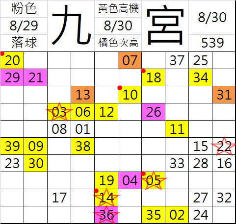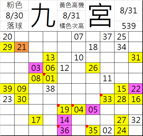 8/31 今彩539 九宮 精選 高機牌 合牌參考