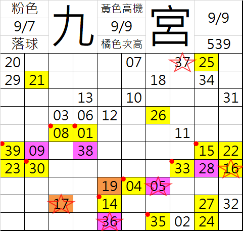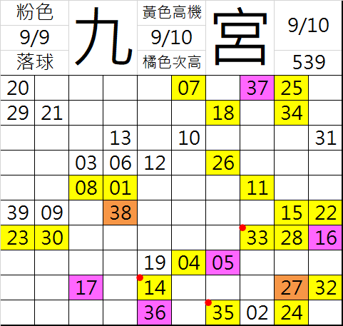 9/10 今彩539 九宮 精選 高機牌 合牌參考
