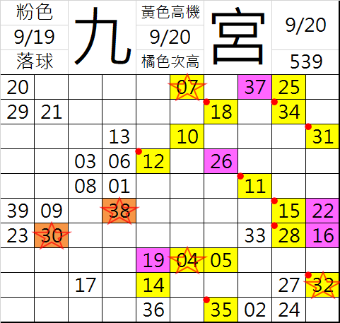 9/21 今彩539 九宮 精選 高低機牌 合牌參考