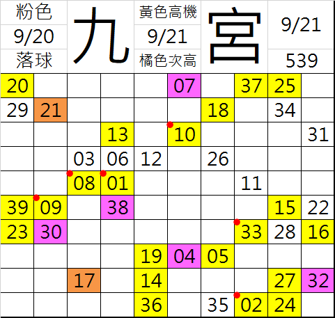 9/21 今彩539 九宮 精選 高機牌 合牌參考