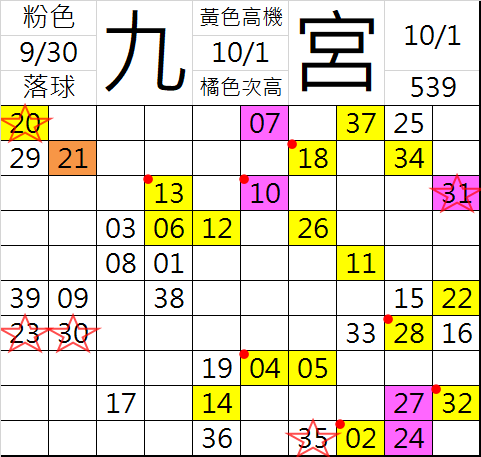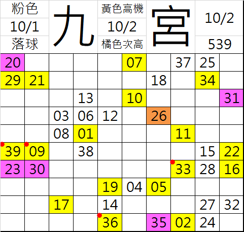 10/2 今彩539 九宮 精選 高低機牌 合牌參考