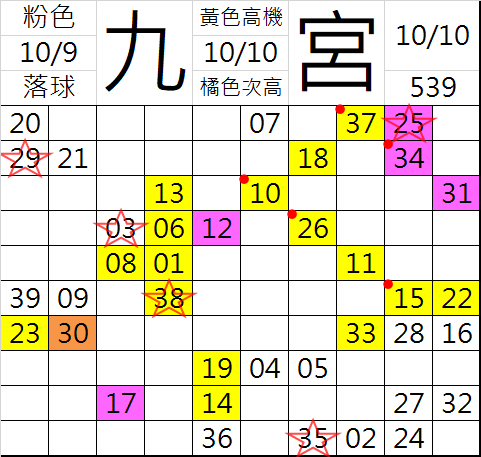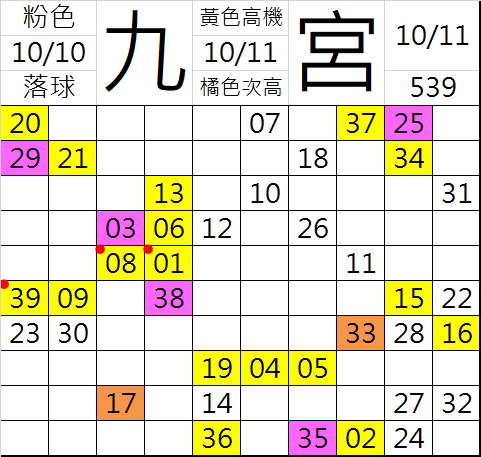 10/11 今彩539 九宮 精選 高低機牌 合牌參考