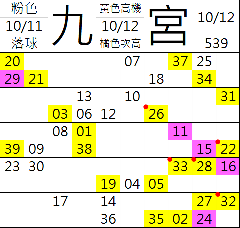 10/12 今彩539 九宮 精選 高低機牌 合牌參考