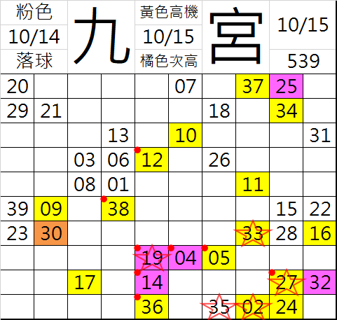 10/16 今彩539 九宮 精選 高低機牌 合牌參考