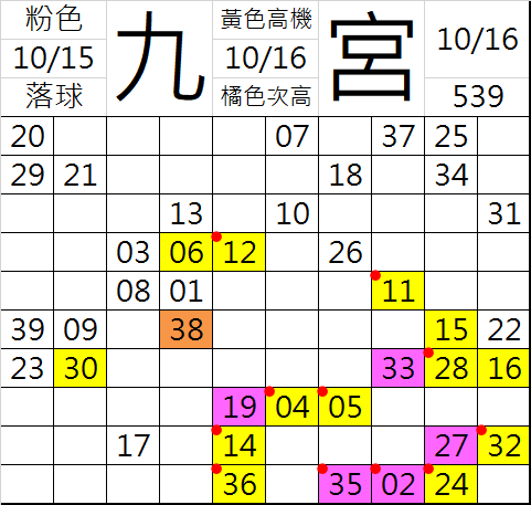 10/16 今彩539 九宮 精選 高機牌 合牌參考