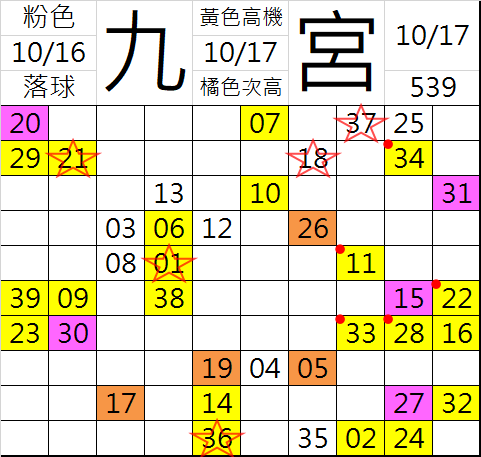 10/18 今彩539 九宮 精選 高機牌 合牌參考