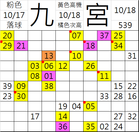 10/18 今彩539 九宮 精選 高低機牌 合牌參考