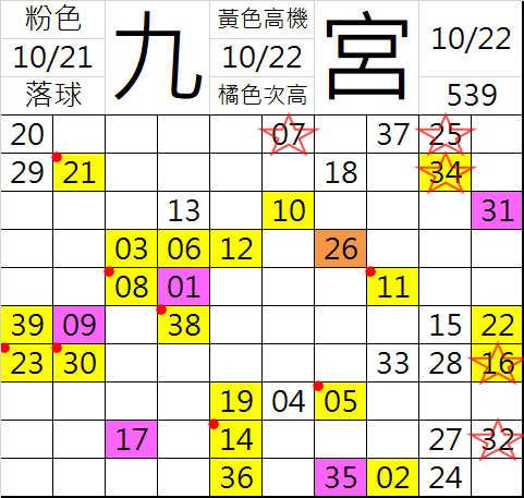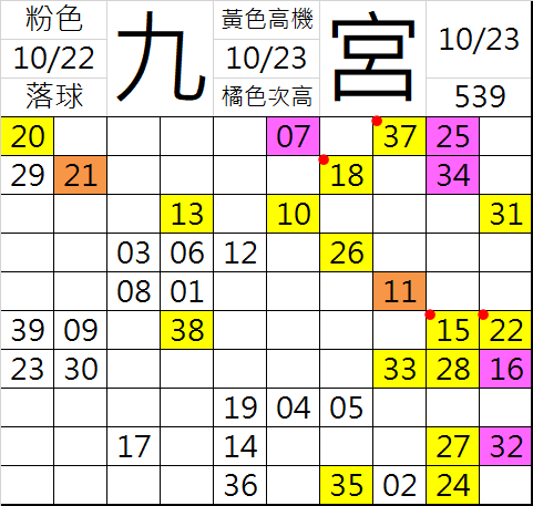 10/23 今彩539 九宮 精選 高低機牌 合牌參考
