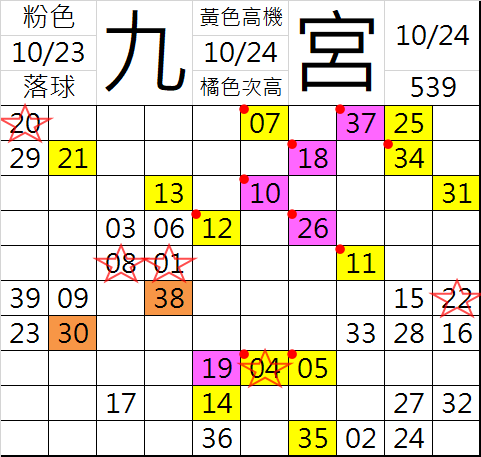 10/25 今彩539 九宮 精選 高機牌 合牌參考
