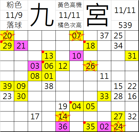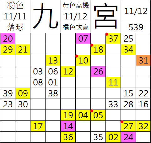 11/12 今彩539 九宮 精選 高低機牌 合牌參考