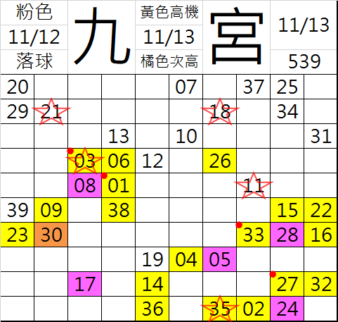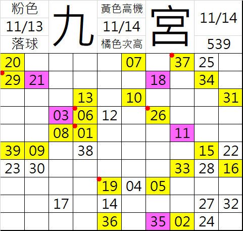 11/14 今彩539 九宮 精選 高機牌 合牌參考
