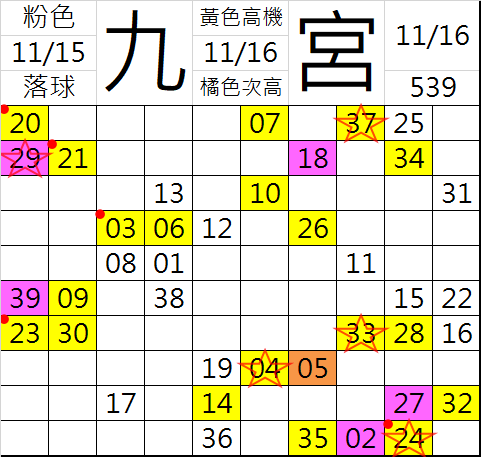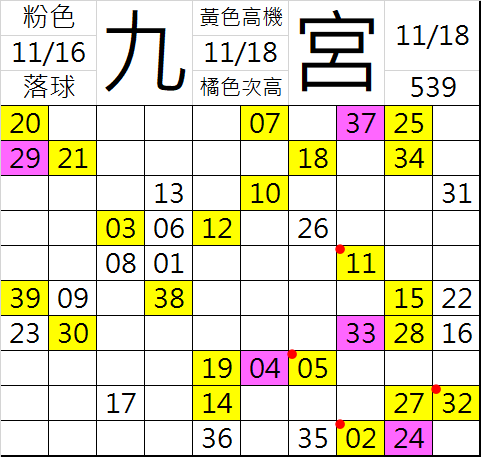 11/18 今彩539 九宮 精選 高機牌 合牌參考