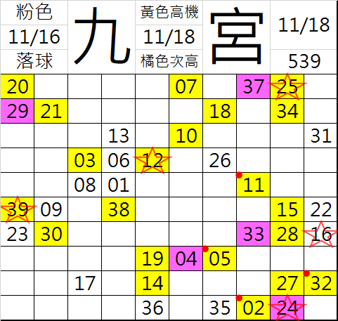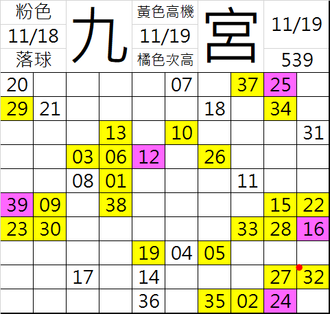 11/19 今彩539 九宮 精選 高機牌 合牌參考