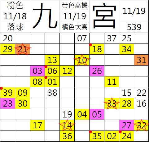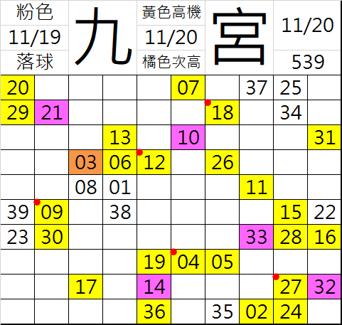 11/20 今彩539 九宮 精選 高低機牌 合牌參考