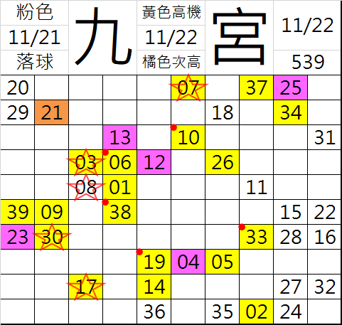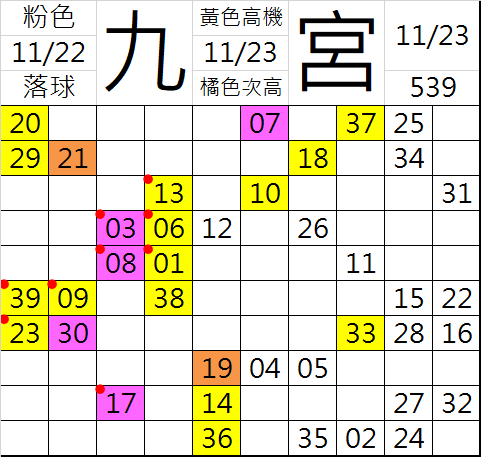 11/23 今彩539 九宮 精選 高機牌 合牌參考