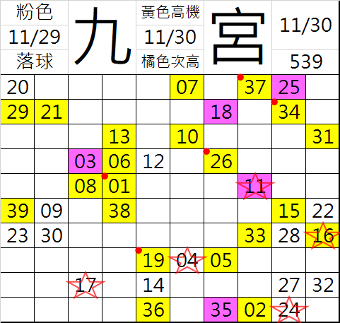 12/2 今彩539 九宮 精選 高低機牌 合牌參考