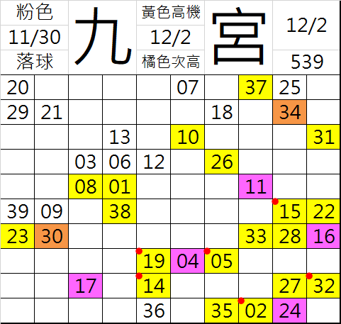 12/2 今彩539 九宮 精選 高機牌 合牌參考