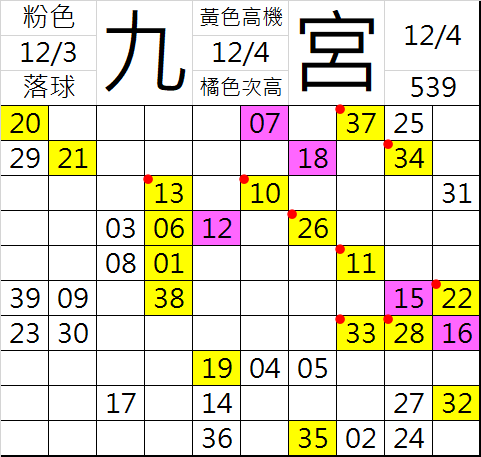 12/4 今彩539 九宮 精選 高低機牌 合牌參考
