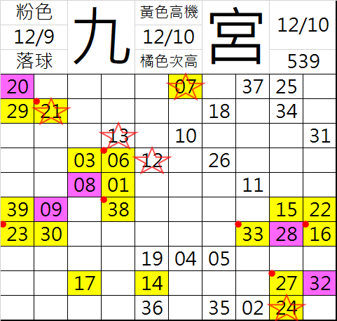 12/11 今彩539 九宮 精選 高機牌 合牌參考