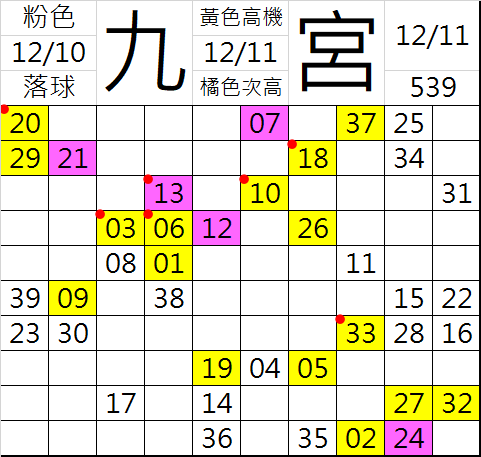 12/11 今彩539 九宮 精選 高低機牌 合牌參考