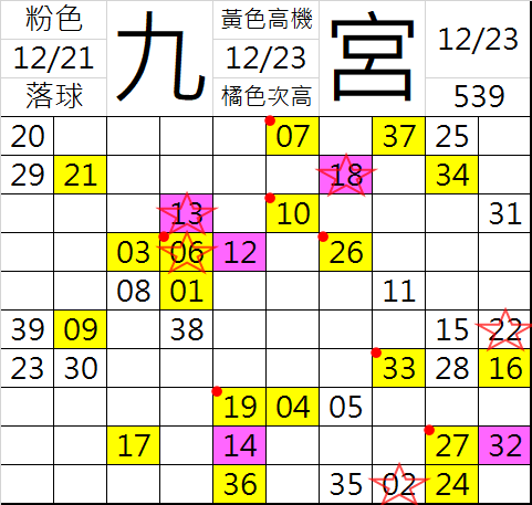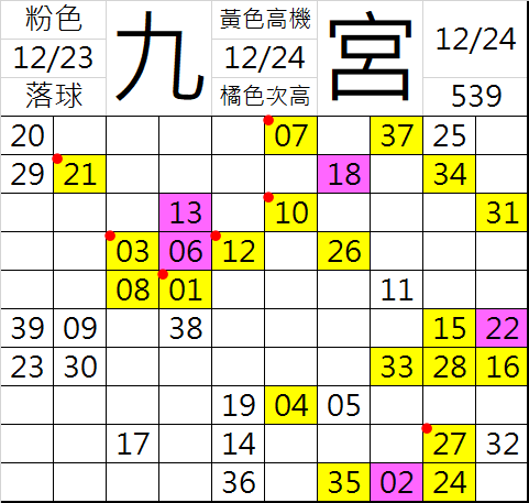 12/24 今彩539 九宮 精選 高機牌 合牌參考
