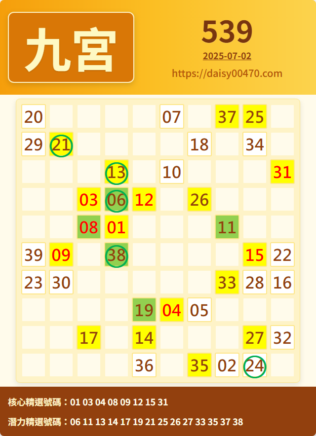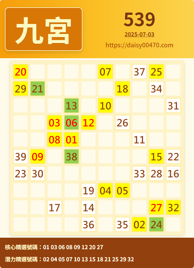 7/3 今彩539 九宮 精選 高機牌 合牌參考