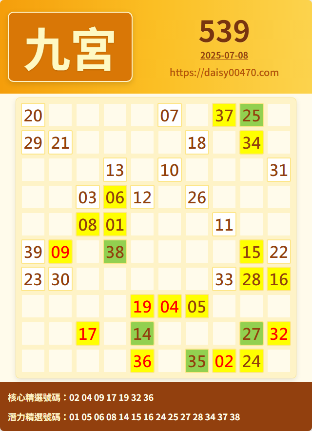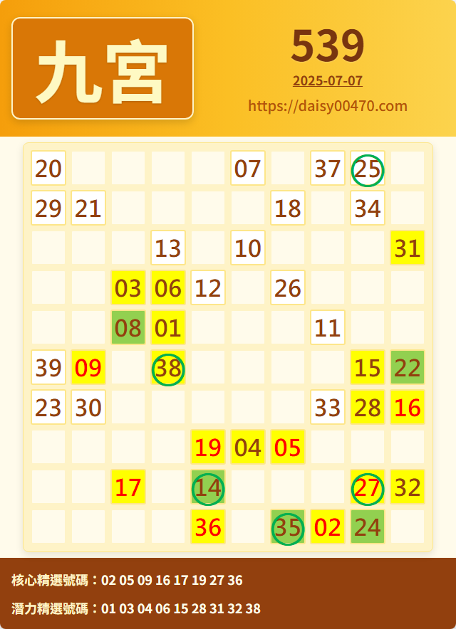 7/8 今彩539 九宮 精選 高機牌 合牌參考